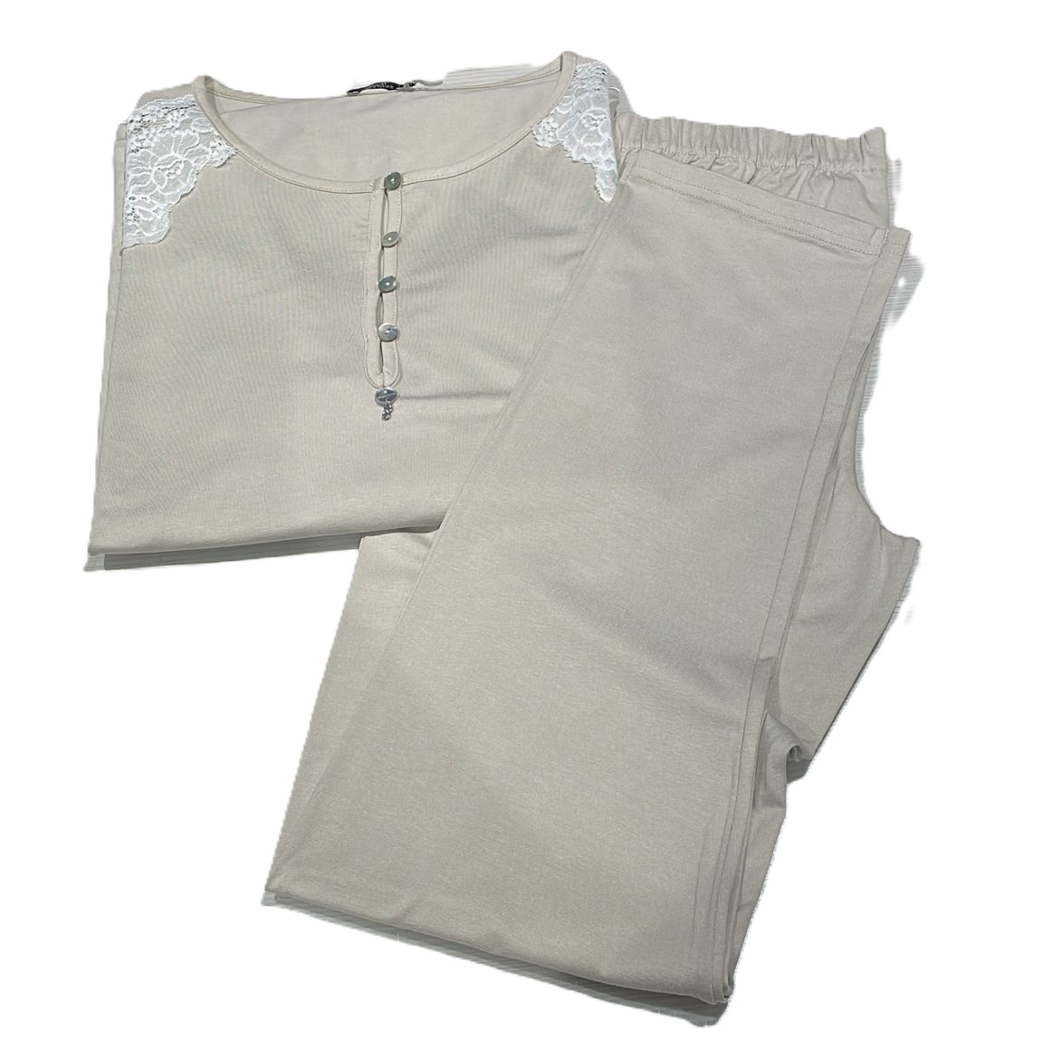 Pigiama in viscosa serafino,manica lunga,  pantalone senza elastico