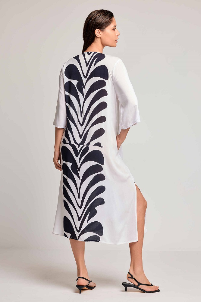 Il kaftano Kim, in viscosa, รจ un capo versatile e stiloso per le giornate estive. Il taglio ampio e il tessuto leggero lo rendono perfetto da indossare in vacanza.