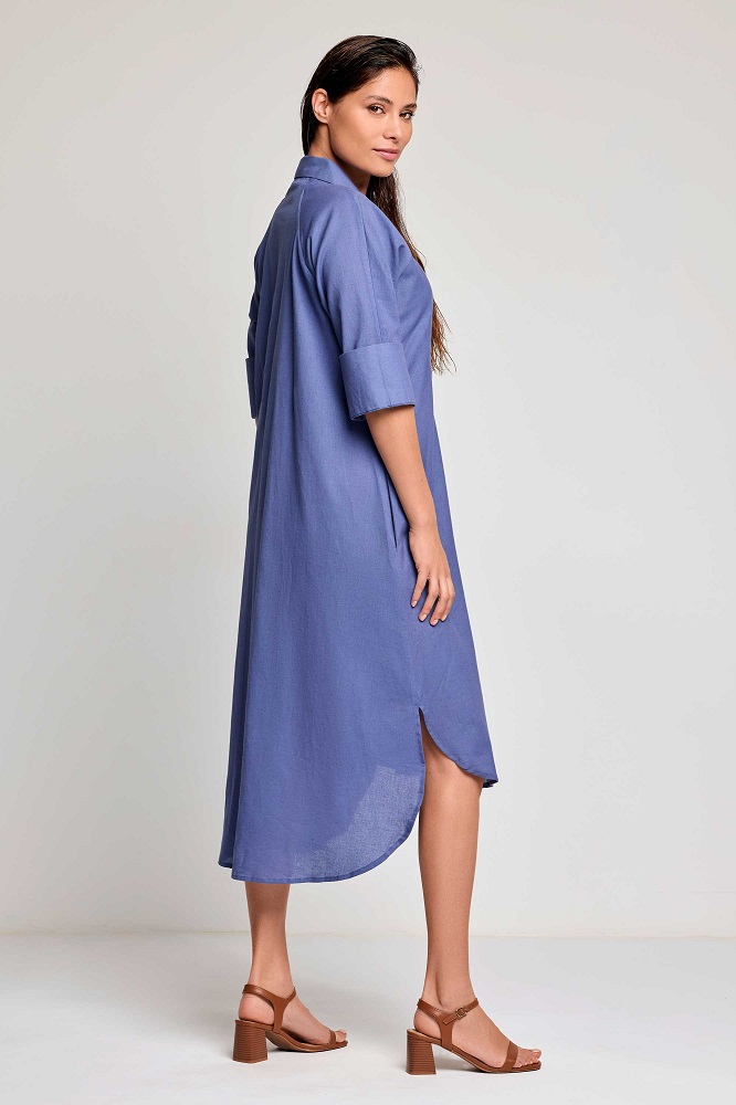 Il vestito camicia Sol è un capo elegante e fresco, perfetto per l’estate. Realizzato in cotone, offre una vestibilità comoda e leggera, con un taglio dritto e fluido.