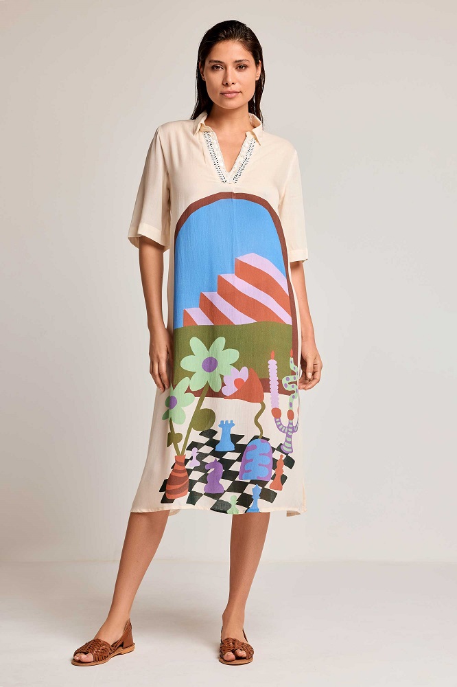 Il caftano Lydia unisce comfort e raffinatezza in un design chic e leggero, perfetto per la stagione estiva. Realizzato in un mix di viscosa e modal, questo capo regala una piacevole sensazione sulla pelle, mantenendo uno stile elegante e fluido.