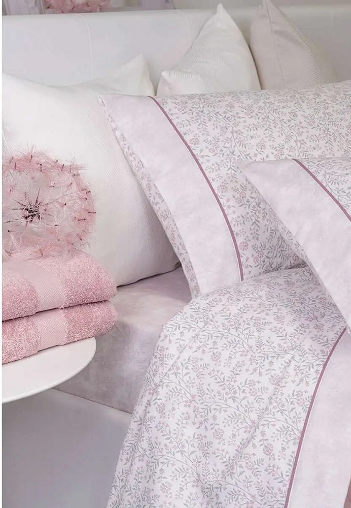 Completo lenzuola matrimoniale in caldo cotone con stampa piazzata.Federe piazzate a sacchetto con orlo alto 8 cm e profilo inserito.