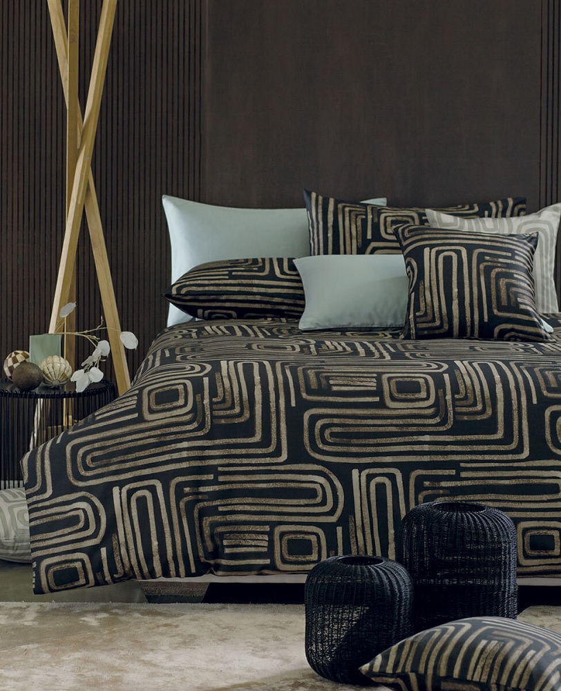 Completo lenzuola matrimoniale in raso di cotone stampato, lenzuolo sotto in raso tinta unita.