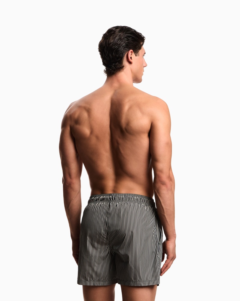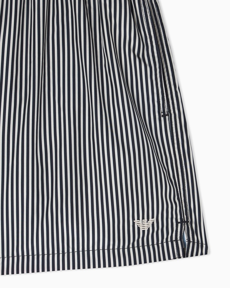 Costume modello shorts con coulisse in vita. Il capo รจ realizzato in tessuto operato e presenta patch logata in satin a tono.