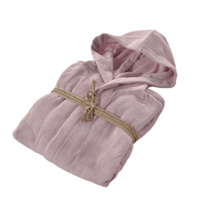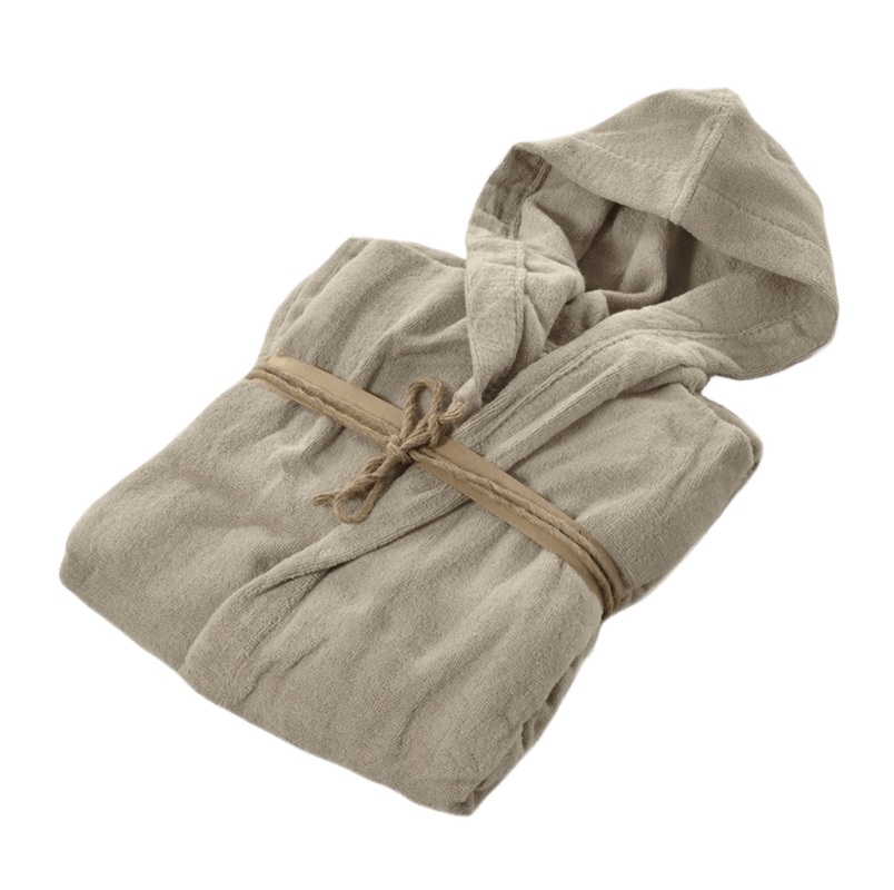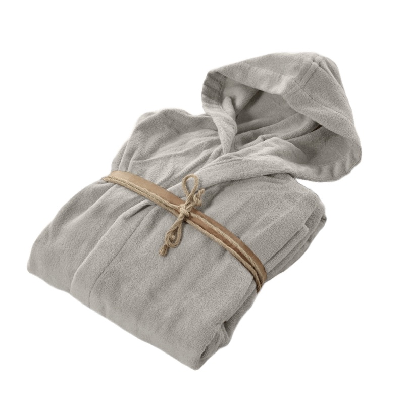 Accappatoio con cappuccio di 320 gr/mq in Microcotone Zero Twist, filato a bassissima torsione che permette all’aria di raggiungere le parti interne del filato, diminuendo il tempo necessario per l’asciugatura e donando al capo una morbidezza eccezionale.